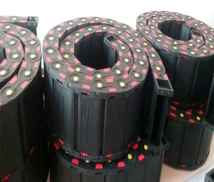 全封閉塑料拖鏈采用可拆卸的橋式接件,從頂部和底部快速鉤住和取下鉤子,所有中心都有橋梁。